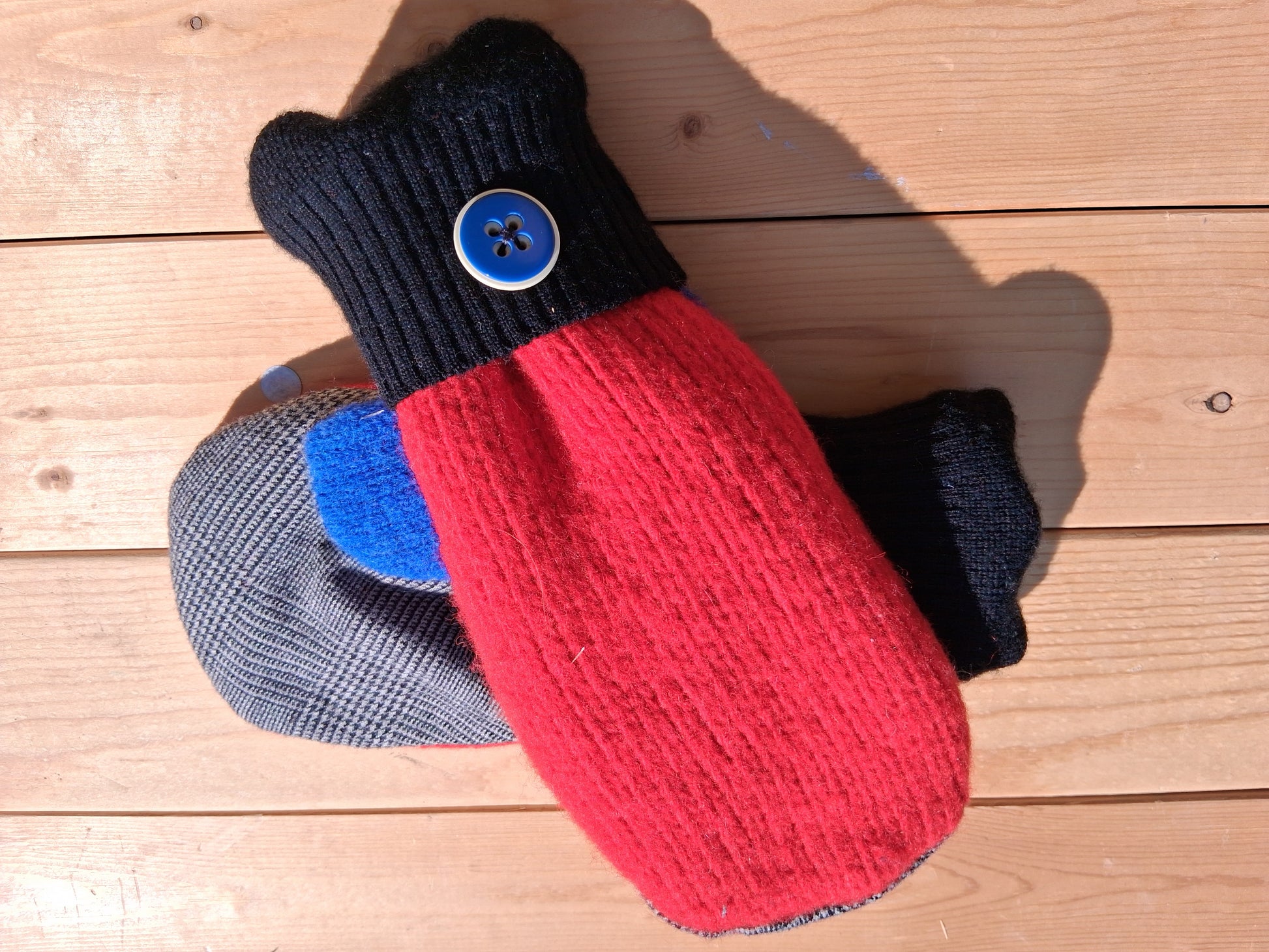 These mittens are made with 100% felted wool from recycled materials and lined with soft fleece. They are made to withstand the coldest weather and last for years.